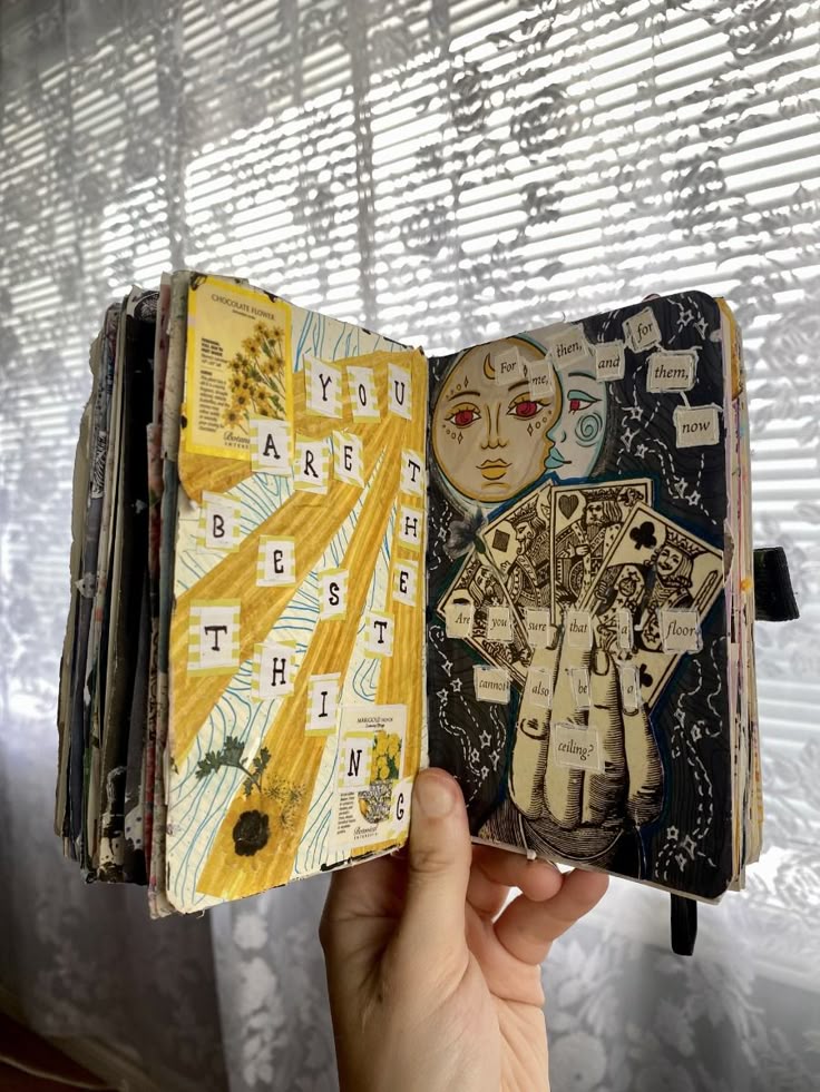 It is creating a personalized book from recycled, repurposed, or “junk” materials like old envelopes, book pages, packaging and other fodder.