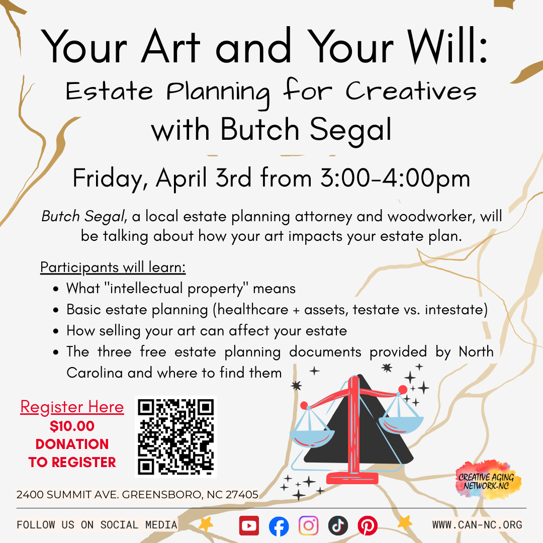 Butch Segal is a local estate planning attorney and woodworker, will be talking about how your art impacts your estate plan.
