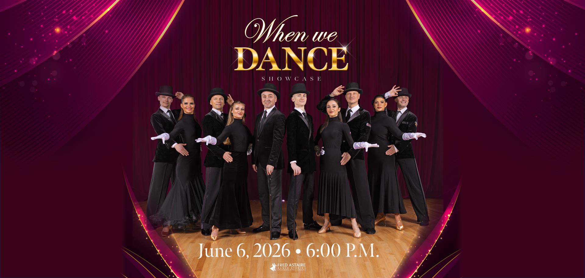 “When We Dance” — Fred Astaire Dance Studios Greensboro Showcase Join us for When We Dance, the semi-annual ballroom showcase. Held at the historic Carolina Theatre in the heart of downtown Greensboro, this inspiring event shines a spotlight on the artistry, dedication, and joy of dance. Our talented students and professional instructors take the stage together, presenting beautifully choreographed performances that highlight growth, passion, and the spirit of our studio community.