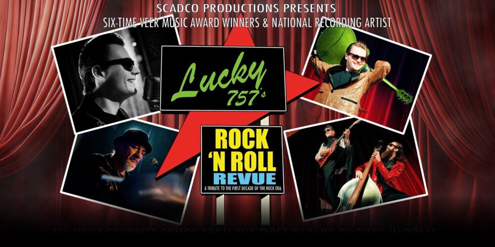 Take a trip back to the days of hot rods, drive-ins, sock hops, poodle skirts and pompadours with Lucky 757’s Rock ’n Roll Revue: A Tribute to the First Decade of the Rock Era. Rock ’n roll, rockabilly doo-wop, rhythm & blues, Motown, soul, surf, beach and more.  This high energy, multimedia show stars national recording artists and five-time VEER Music Award winners Lucky 757. Through video, narration and wardrobe changes, audiences are taken on a journey from Sun Studio in Memphis in the early 1950s, to the streets and alleys of the big cities where doo-wop was born, all the way through to the early sixties where all kinds of new sounds and styles were emerging from coast to coast.  Classic, timeless songs that have become a part of pop culture and loved by multiple generations thanks to their appearances on TV and in films like American Graffiti, Grease, Back to the Future and Pulp Fiction.  You’ll be dancing and singing along to all the hits you know and love by Elvis Presley, Chuck Berry, Buddy Holly, Roy Orbison, Bobby Darin, Sam Cooke, Dion, The Drifters, Smokey Robinson, The Surfaris and so much more!