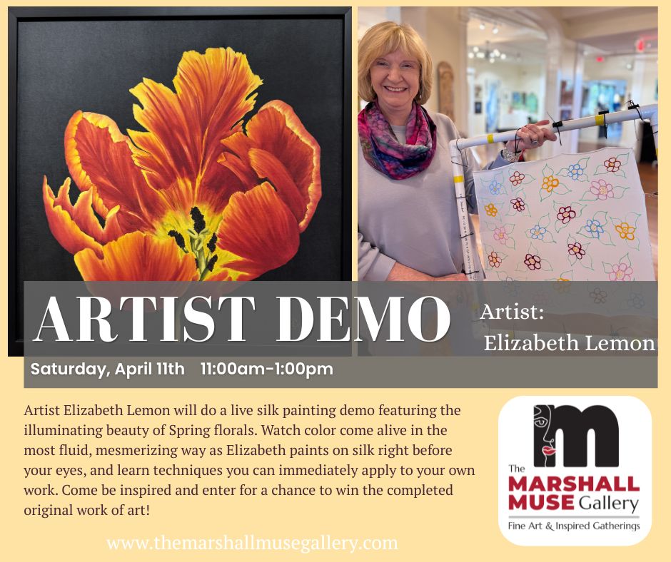 Watch color come alive in the most fluid, mesmerizing way as Elizabeth Lemon paints on silk right before your eyes. Then step in and add your own touch to the piece!
