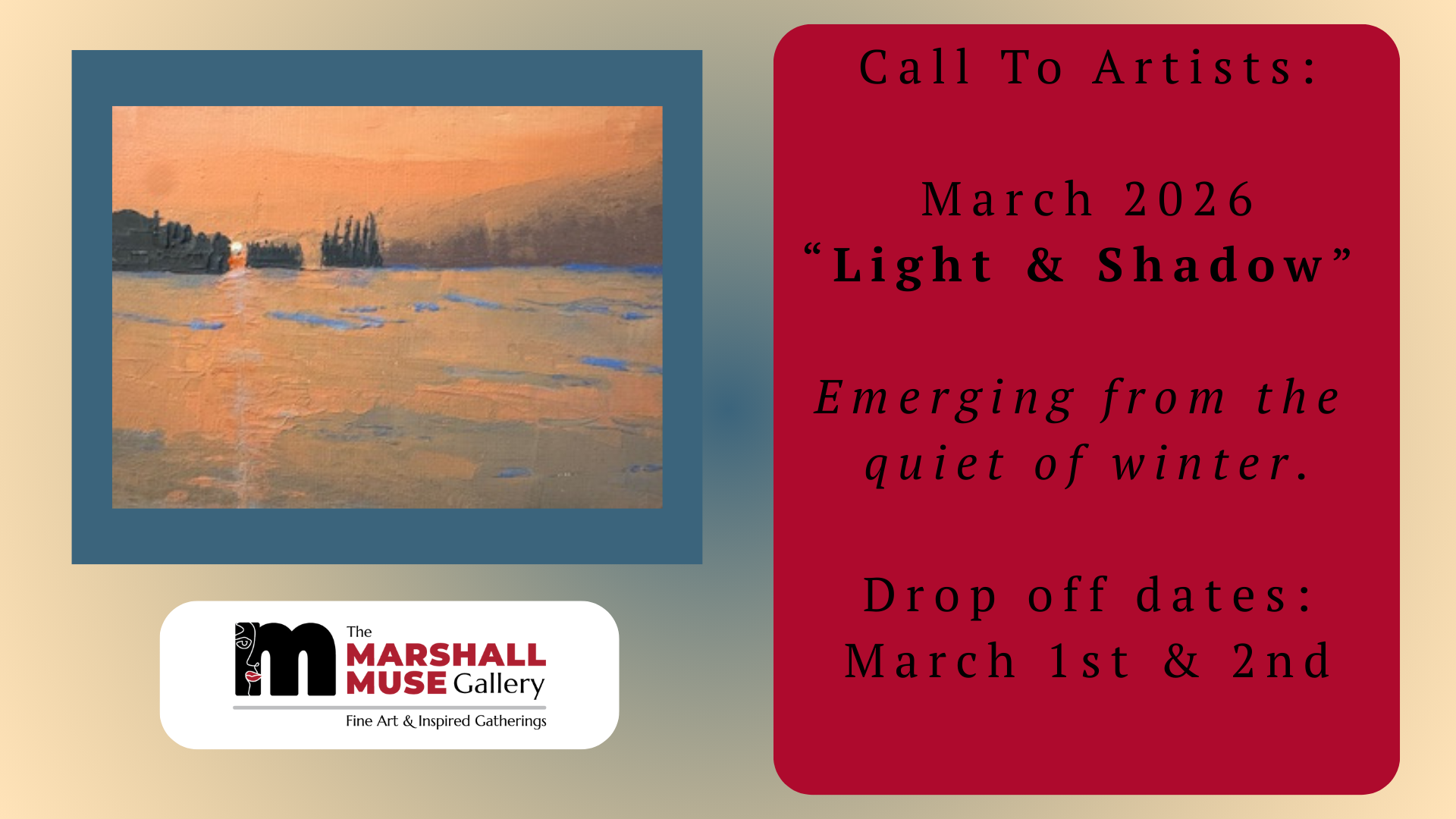 As the seasons begin to shift, this exhibition explores the quiet dance between illumination and darkness. Light & Shadow showcases artwork that investigates reflection, contrast, glow, and silhouette across all mediums. From subtle, indirect light to dramatic shadow play, this show captures moments of transition, transformation, and renewal as winter gives way to spring.