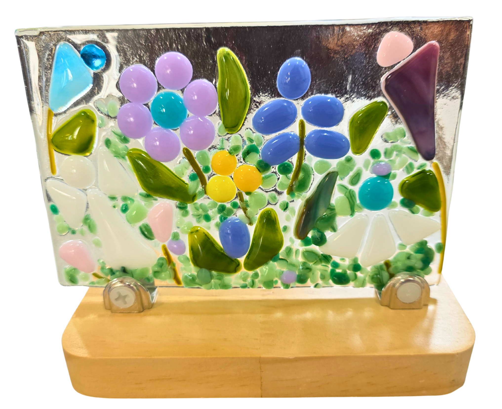 Choose from hand cut petals and leaves to create your own arrangement on your glass canvas.
