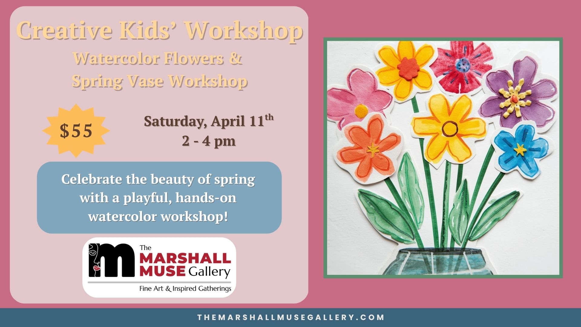 Watercolor Flowers & Spring Vase Workshop (Ages 8-12)